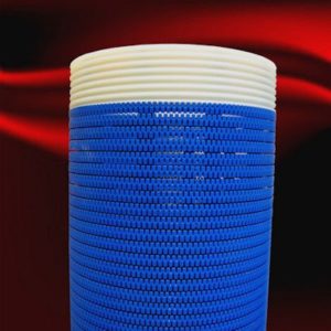 Visti in sezione i dischi hanno forma a “ V “ che evita l’intasamento e assicura una bassa resistenza idrodinamica. Le connessioni sono di tipo filettato maschio/femmina e sono in Caprolon (Poliammide-6).